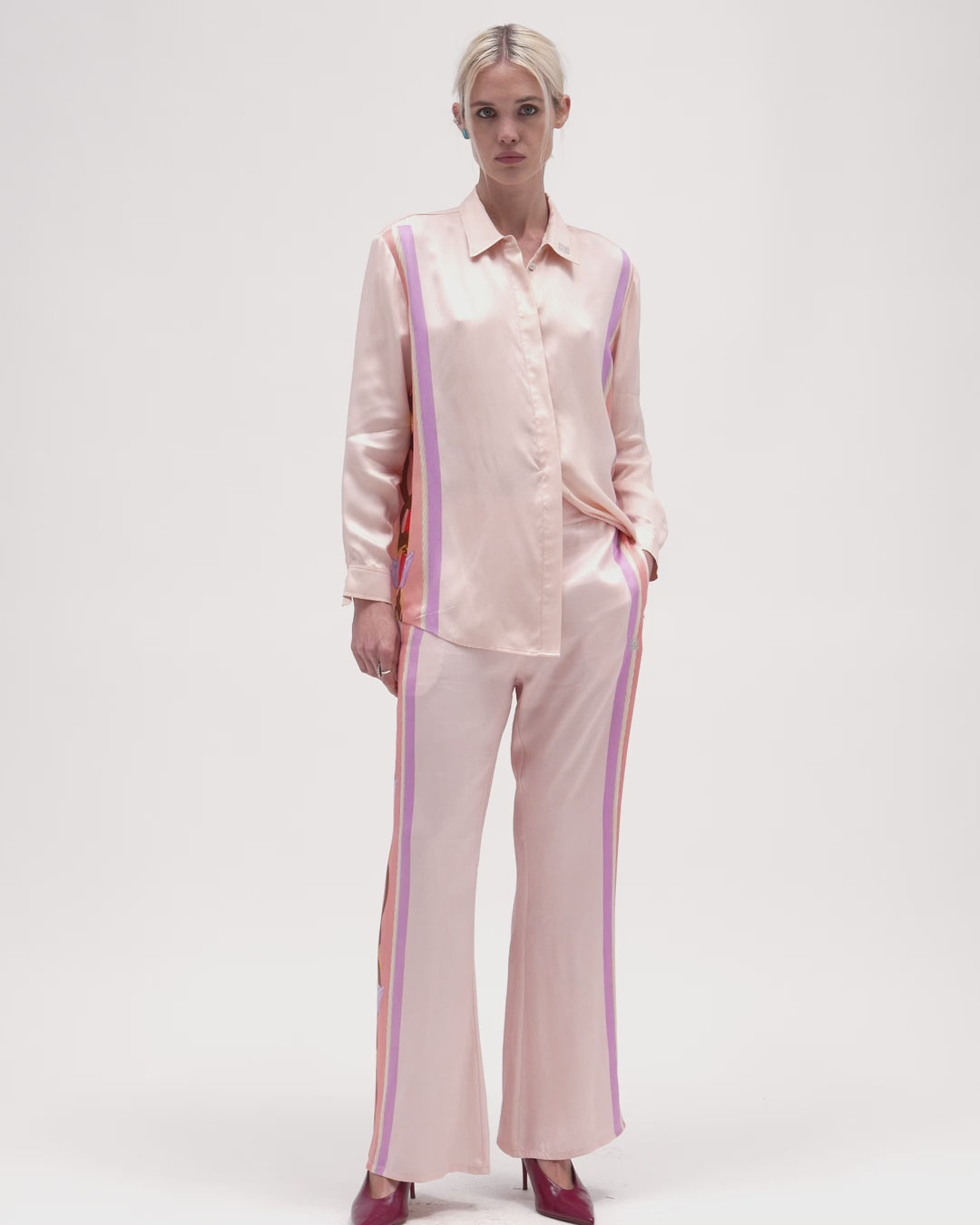Our Mirage feature piece is illustrated in hand-placed rope & chains bound by the Californian Poppy. This shirt boasts a straight and fluid fit to accompany you wherever you go. Our biodegradable vegan cupro is cut in a maximalist and uplifting style – a harmonious balance of distinguished elements, best paired with matching pants. Custom Muma buttons and a timeless spread-collar neckline invites the wearer to make it their own.