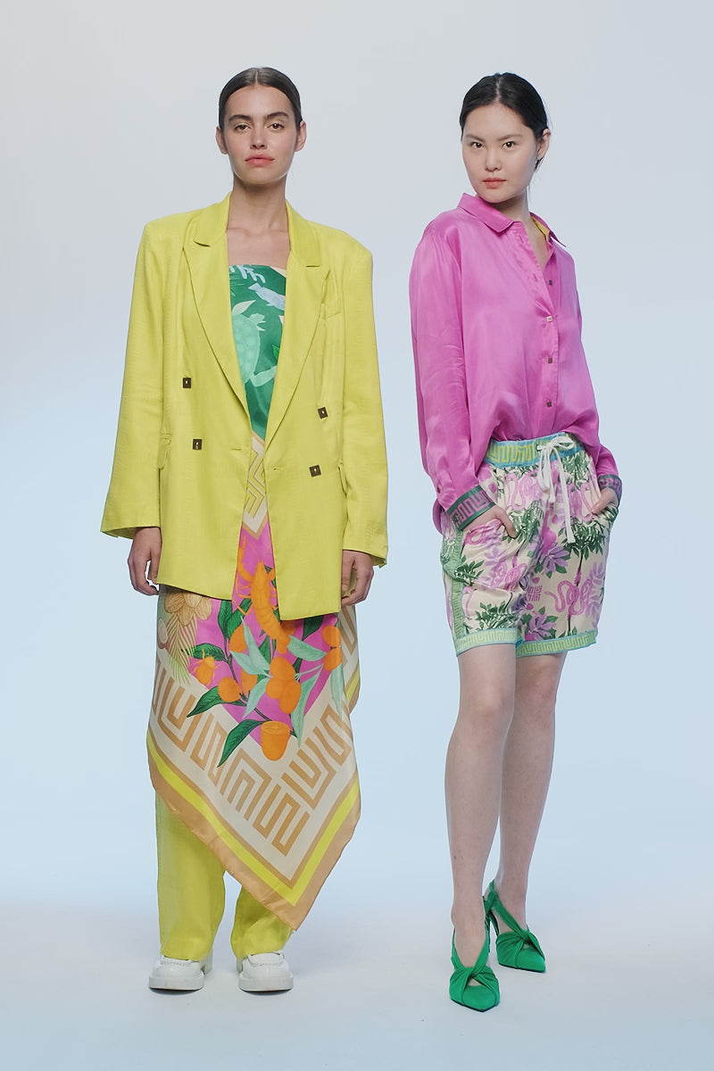 The Muma Jacquard Pant boasts a relaxed, must-have, timeless style. With a subtle pleat and flawlessly woven check in our exclusive Muma Jacquard print, the layers of impeccable visual interest remind you that there’s more to life than meets the eye. Cut in a silky cupro blend, the breathable, lightweight fabric is magic to the touch and catches the light in shimmering winks – calling to mind seasons forever in bloom. Featuring belt loops, a fly-zip, clasp closure, front slanted pockets, and back welt pockets, this piece asks to be worn your way – around your hips or higher on your waist, taking you wherever you go in comfort.