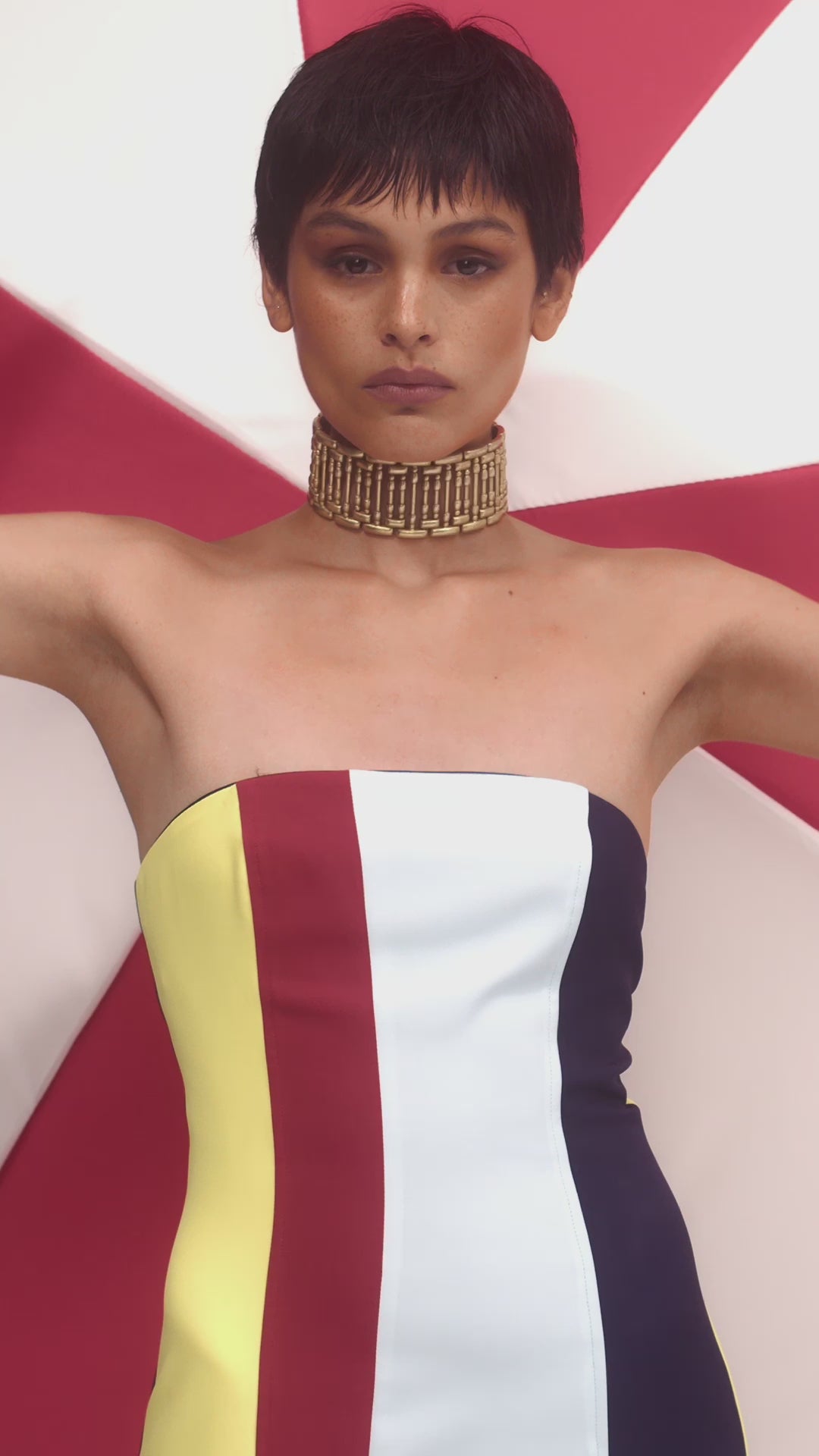 Showcasing a sleeveless, strapless silhouette, the Panelwork Bandeau Dress has a slimming elegant panels to create our seasonal feature piece. Constructed in a heavy suiting material, with an invisible zip at the back, and with a sleek, form-fitting cut, it's both a flattering & stylish option for resort wear or evening events.