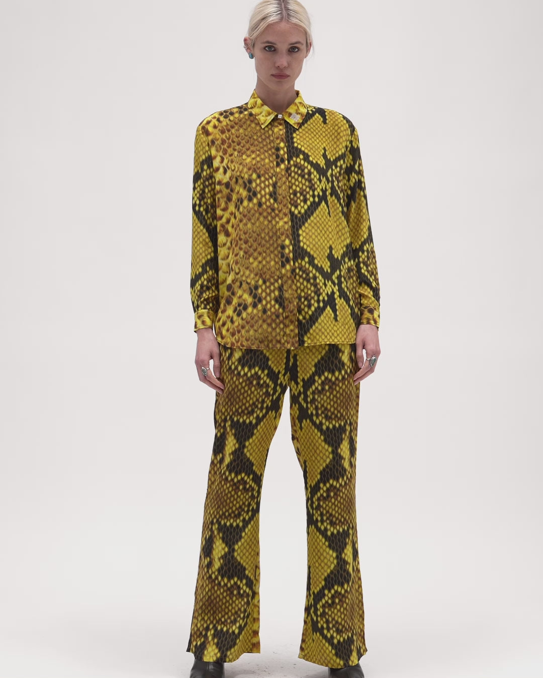 These elegantly draping 100% Organic Silk Chiffon pants boast a flared and fluid fit to accompany you wherever you go. With a flat waistline at the front, elastic at the back, and crafted with pockets in a cut that swoops elegantly into a soft flare, they ask to be worn your way – around your hips or higher on your waist, taking you to your destination in class and comfort.