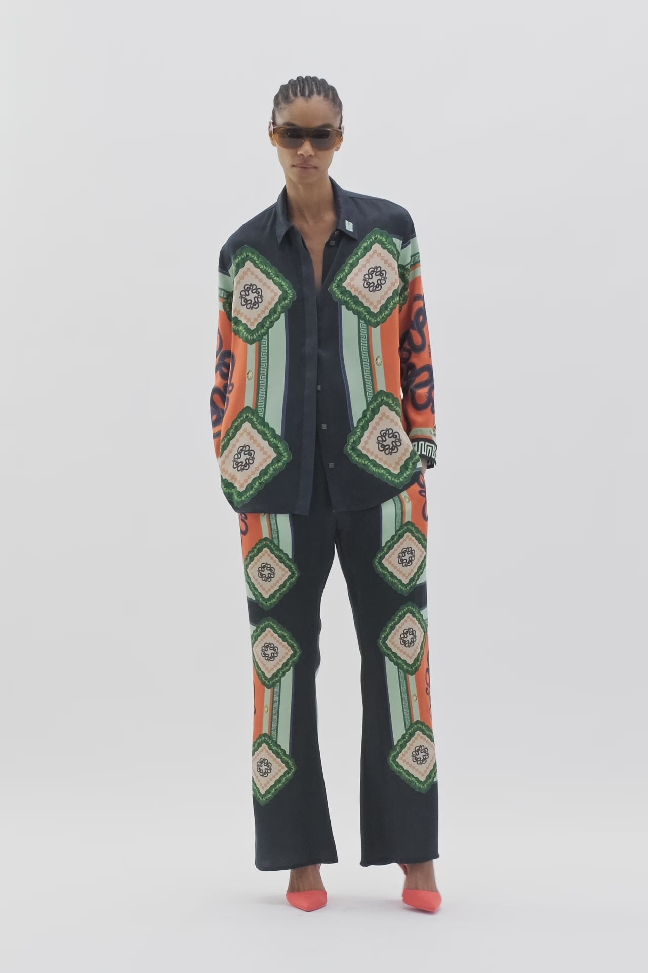 Night & day blur in our seasonal signature: The Yin Diamond set. Hand-illustrated, and hand-placed we introduce the Malaysian Coral Snake. These elegantly draping vegan cupro pants boast a flared and fluid fit to accompany you wherever you go. With a flat waistline, and crafted with pockets in a cut that swoops elegantly into a soft flare, the Yin Mixed Palm Pant asks to be worn your way – around your hips or higher on your waist, taking you to your destination in class and comfort. Designed in an all-flattering chamfered cut, wear with accompanying Top or Crop, or contrast with one of the other bold colours in the range.